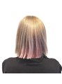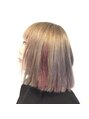 長く伸ばしていた髪をばっさりと切りっぱなしボブにしました。ブリーチは合計3-4回はしています。内側に薄ぴんく色をのせて、表面は黄ばみをとったミルクティベージュに透明感を出しました。