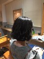 レングスをあご下に設定し、毛量調整で軽さを出した後に、ノーズラインから下に緩めのデジタルパーマをかけました☆カラーはダークトーンのイルミナアッシュです☆