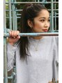 カラーは、暗めのアッシュ!!シールエクステで長さとボリュームを出してスッキリオールバックポニーテール★