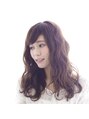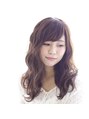 上から大きめなカールを、ゆるめにつけたウェーブ スタイル。根元近くからカールがついているので、全体にフワッとした、甘めの柔らかい印象になります。