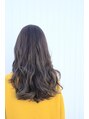 毛先に向かって明るくなるバレイヤージュと、全体の内側に入れたメッシュ。その他の部分をグレージュでトーンダウンし、シャンプー台にて青紫っぽさを揉みこんでもうワンランクくすみ感を足しました☆