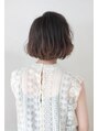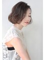 アゴ先ラインのボブベース×ニュアンスパーマで今どきに。グロスワックスをくしゃっともみ込んで無造作に。ややウエットに仕上げて可愛さup!