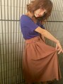 柔らかいブラウンで上品さとちょっと細かい巻きでふわっとした可愛らしさもプラスして♪外ハネだけでもいけちゃう万能な長さでオシャレ度アップ☆