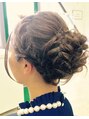 バックにボリュームを出して、それにサイドからの編み込みを巻き付けて可愛く(^-^)