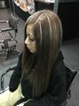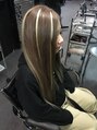 エクステストレートによるメッシュです☆トップのほうから入れて目立ちやすくしています!カラーのメッシュに比べ、ダメージがないので、傷ませたくない方にオススメ☆
