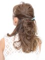ハーフアップの毛束を一度左に集め、逆サイドに向かってねじっていきピンで留める。下に残っている髪を今度は右から左にねじりながら留める。そうすることで、交差したようなシルエットに。短めの髪でもOKな万能アレンジ【EARTH大曽根】