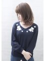 ミディアムラインのゆるふわカールスタイル。柔らかさでフェイスラインの小顔効果。