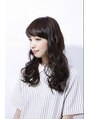 お手入れが楽なランダムカールに重めのワイドバングでスパイスを効かせたスタイルです。
