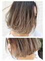 バレイヤージュカラーとボブスタイルをミックスさせたスタイルです。毛先に淡いグレージュを被せ、柔らかい印象に仕上げました。これからの季節、いつものボブに飽きてきた方にオススメです。※髪の状態によりブリーチの回数が異なりますのでご注意ください。