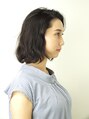 肩上ワンレンボブにゆるめのパーマをかけて、前髪をかきあげてもふんわりやわらかスタイルです!