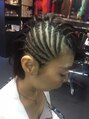 サイドのみのコーンロウ。アップにすることで、とても印象的に!