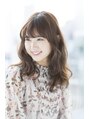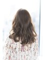 胸上のセミロングヘア。コテで大きな波ウエーブをつくり柔らかい動きをつけ、優しい雰囲気に。