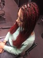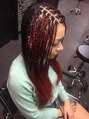 耳から前全体にストレートエクステを装着。中間までは編み込み、毛先はストレートで残しました。