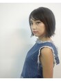 切りっぱなしのボブスタイルを外ハネにしたスタイルです。色はグレージュで透明感があって綺麗です。