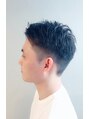 サイドもバックもさっぱりかりあげてむだのない爽やかスタイル。トップのみ動きが出せるように残し、前髪っも立ち上げてカッコよく!