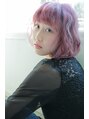 極力痛ませないようにブリーチをした後、青みの強いピンクを入れました。褪色後オレンジっぽくならない、鮮やかだけれど品のある アッシュピンクです。