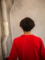 無造作なセンターパートがおしゃれなショート。前髪を長めに残し、やや前下がりシルエットでカットしています。サイドはツーブロックにして毛先のうごきが作りやすいようにしています。ウェットな質感で大人セクシーな雰囲気に!