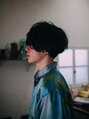 マッシュなシルエットの個性はボブ。バックは軽く刈り上げてすっきりさせつつオーバーは重めに残してメリハリのあるスタイルに。全体にゆるくパーマをかけているので、手ぐしでスタイリングもしやすいです!前髪はあげても流してもOK!