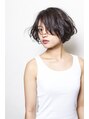 くせ毛っぽく毛先をいかしたボブ。重めなライン感を残しつつ、動きがでるようにカットしてます。ウエットな質感のスタイリング剤が相性抜群です。