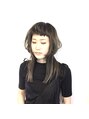ロングヘアをばっさりと表面はボブてパツンとカットしました。前髪も眉上にして デザインをかなり楽しめるスタイルに仕上げました。カラーは ブリーチを2.3回したところにネイビーを入れてあり、色が抜けてグレーになっています。