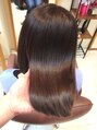 ナチュラルな厚めバングを斜めバングで横に流れるようにカット,つやつや美髪で極潤ローズトリートメントをしっかりして、大人可愛いワンカール。似合わせカットで段をつけすぎないナチュラルミディアムスタイルです。流れるような前髪も得意!