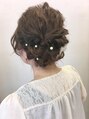 アシンメトリーにまとめたルーズなダウンスタイルです。ミディアムレングスで長さがあまりなかったのでまとめすぎずにツイスト編みをほぐしてボリューム感を出しました。