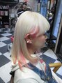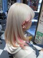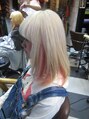 ブリーチを数回して、シルバーと紫を絶妙に混ぜてONすればホワイトカラーの出来上がり。インナーはカラートリックのドラゴンレッドを薄めてONしたパステルピンクレッドでございます。