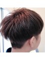 短めのかりあげに対してトップは丸みとラインの残るマッシュをつくったので、メリハリがよくつく2ブロックカットに仕上がりました。
