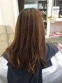 ダメージレベル★★★☆☆ クセレベル★★☆☆☆ 透明感を出すため赤色をしっかり押さえオリージュカラーに☆ カットでは重ためのラインを出し、軽さや、動きはコテ巻きでランダムに♪