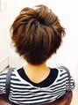アシンメトリーなショートスタイルです。耳かけ仕上げ用に耳周りの毛量を減らしています。片方のみ耳かけにすれば、更にアシンメトリー感アップ!!どんな髪質にも万能なスタイルです!