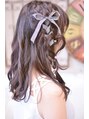 セミロングの編みこみリボンアレンジ【メイズ東中野・鍛原志行】