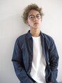バング、顔周りの毛を立ち上げながらも全体にカールをつけることで柔らかさを残しつつも男らしさを出しています★