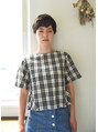イギリス人の様な、柔らかなくせ毛風ニュアンスパーマスタイル♪カラーはダークトーンのカーキアッシュ★暗くても光に当たると透けて透明感があります。クセのある方はクセをいかしてカットします(^_^)ベリーショートもかわいくおしゃれに!