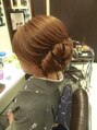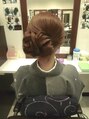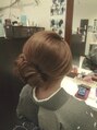 カッチリな和装ヘアより少しカジュアルなスタイルがお好みということで、シニヨンをサイドに作ってみました
