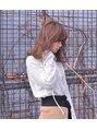 毛先をサイドに向かって広げた透けるバング(前髪)と抜け感のあるウエーブヘア。カラーリングは11トーンのヌーディなアッシュグレージュ。