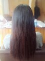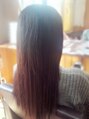 グラデーション風になるように毛先より明るめの色をつけています(^^)