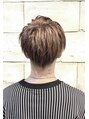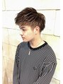 周りをツーブロックにして、ジェルでセットした爽やかなスタイル。カラーはハイトーンイエローカーキ。明るめをくすませて大人っぽく。
