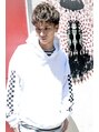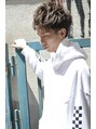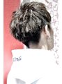 カット サイドからバックまでスッキリと2ブロックに刈り上げて、トップは束感が出る様にエフェクトカットしています。カラー 8レベルのプラチナシルバー