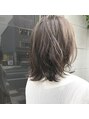 グレージュカラーのミディアムスタイル。前回かけたパーマを活かして動きのあるスタイルに赤味を消したグレージュカラーで透明感を出しました。
