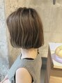 カットは切りっぱなしボブです。カラーは根元、数センチを暗めに染めたプチグラデーションのプラチナアッシュカラー。トリートメントはコラーゲンとシルクをブレンドしたフッ素コートのトリートメント