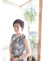 丸みを残さずに、縦長のシルエットデザインのショートスタイル。トップにボリュームがでるよう、頭の形を意識してカットしています。