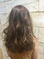 ベースは顔まわりにレイヤーが入ったロングスタイル。ルーズなカールにアッシュ系にピンクカラーをミックスして。
