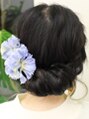 サイドを編み込んで残りの毛束を後ろでまとめたスタイル