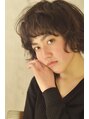 全体は暗めのアッシュにカラー。くせ毛風にパーマをかけてあげるとセットが楽になりますよ。襟足はスッキリカットしたショートボブ。