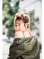 ショートヘアもこんなアレンジで遊べます。前髪はラフなポンパドールに。顔まわり、襟足の後毛は少し落とすことでカジュアルな雰囲気に。パーティーにもおすすめのカジュアルアレンジです。