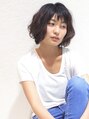 前下がりボブにパーマをかけたスタイルです。カラーはグレージュのグラデーションカラーに。スタイリング剤を揉みこむようにつけ完成☆朝のセットも簡単に♪