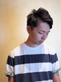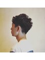 パーマをかけてサイドとバックの刈り上げにメリハリをつけた男らしいスタイル。
