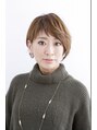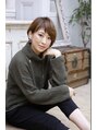 眉上に切り込んだバングをアクセントに、顔周りはマッシュラインにカットし女性らしく仕上げました。丸みのあるスタイルにハイライトを入れ、柔らかさと動きを出しています。