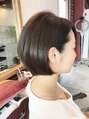 後頭部から襟足にかけて美シルエットなナチュラルショートスタイルです。スタイリッシュに耳かけすると更に後頭部のボリューム感、メリハリ感が出て綺麗なスタイルです。幅広い年齢層に合うスタイルです♪