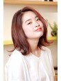 カラーは強めのレッドバイオレットに伸びかけの髪もあえて外ハネで楽しむミディスタイルです。月のヒ 代々木上原